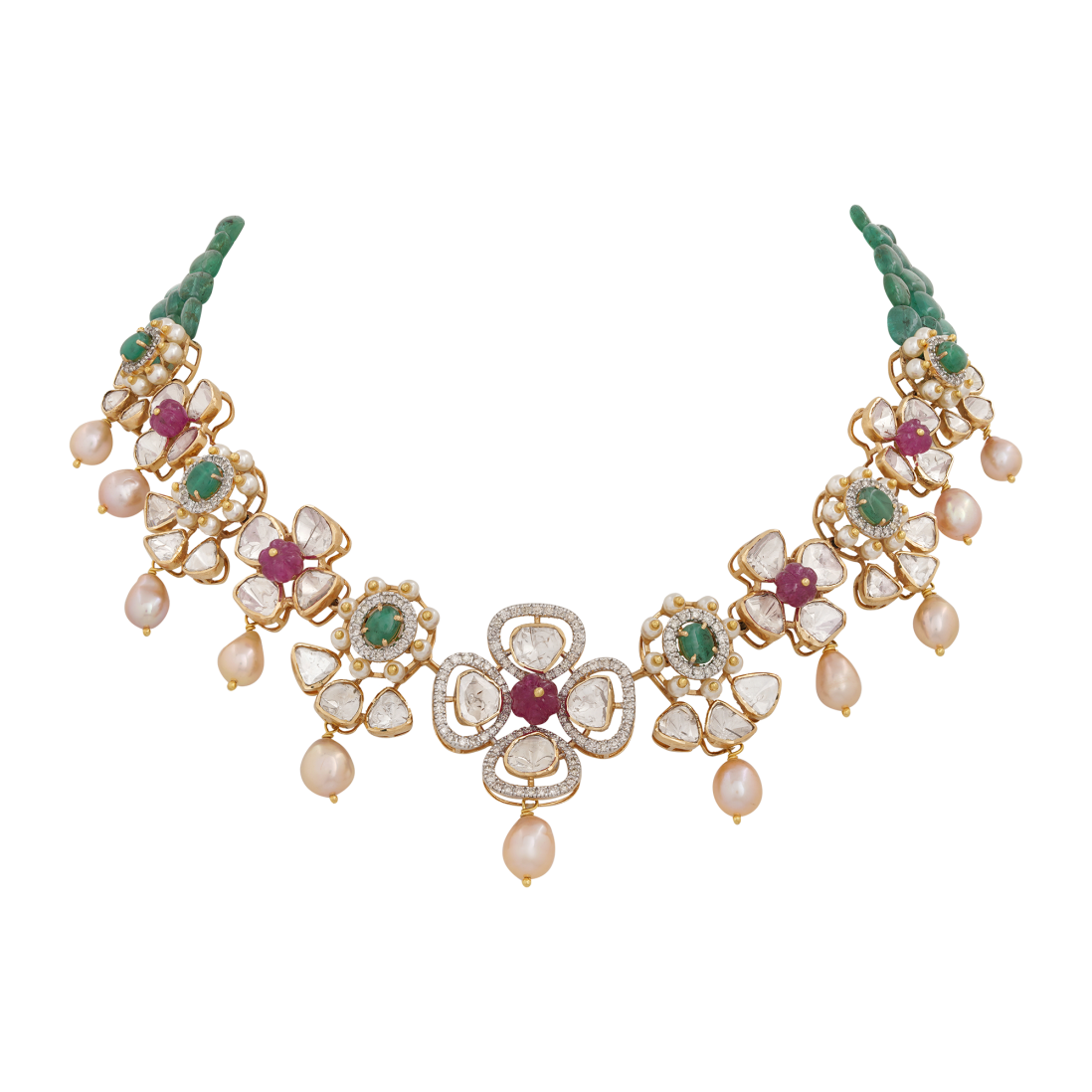 Diamond, Polki, Emerald, Pearls, Ruby, 18Kt Gold
