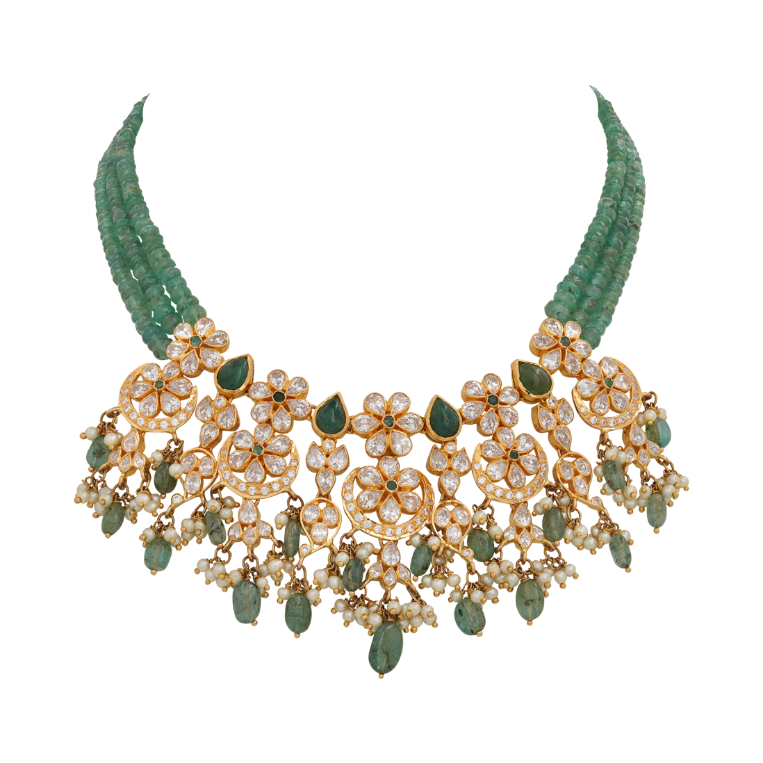 Diamond, Polki, Emerald, Pearls, 18Kt Gold