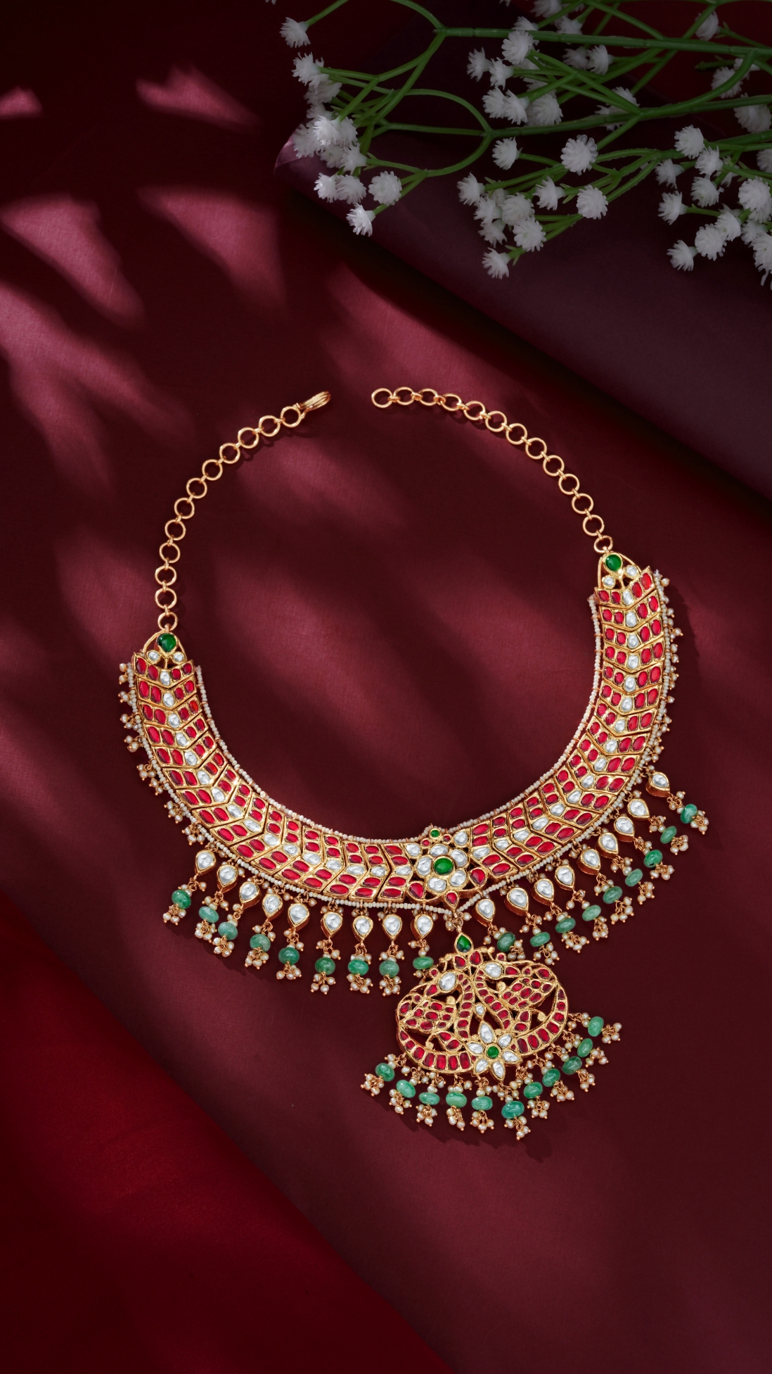 Polki, Emerald, Pearls, Ruby, 22Kt Gold